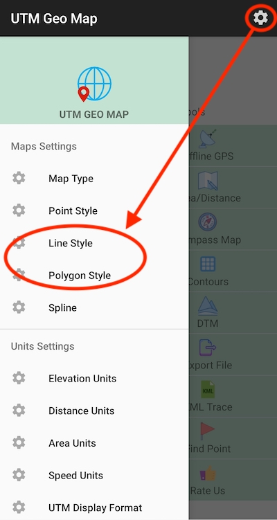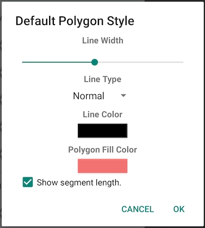 1. Go to Default Line / Polygon Style, from the front page, click the menu or swipe from left to right. You can also access this menu by clicking Line / Polygon when you register it (before saving).